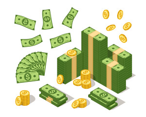 Golden cryptocurrency coins stacked with dollar bills on a dark surface, showcasing the intersection of digital finance and traditional currency in the modern economy