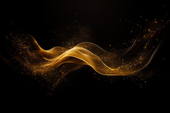 glowing golden particles floating in dark space background