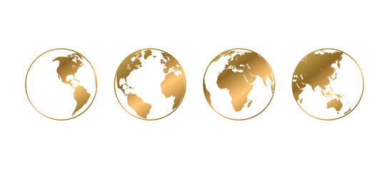 Stylized globe with golden continents and arrows circling it, placed on a small pedestal against a light blue background.