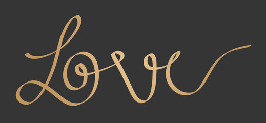 Love Word Calligraphy in Gold on Black Background. SVG