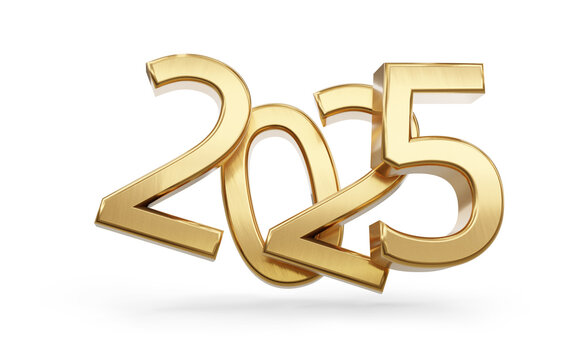 2024 new year bold letters golden symbol isolated, silver gold metallic glossy 3d-illustration
