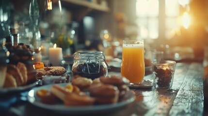 Delicious breakfast featuring assorted pastries and fresh orange juice