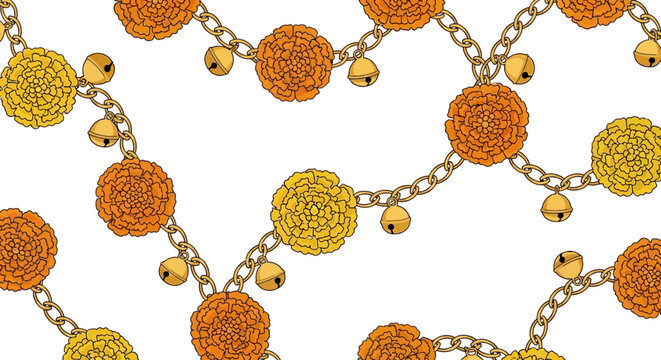A christmas themed background with a golden bell holly and stars on a green colored background design