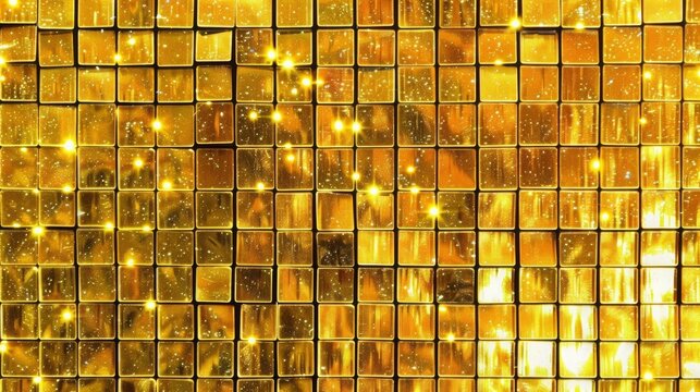 wallpaper for seamless shiny gold glitter holographic foil squares background texture abstract golden yellow reflective mosaic tinsel sparkle tiles repeat pattern christmas or new years  generative ai