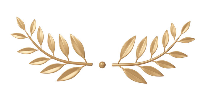 3d rendering golden laurel wreath divider. Trophy, award, champion victory concept