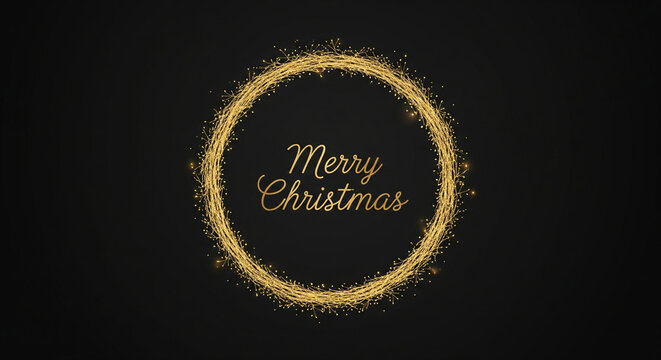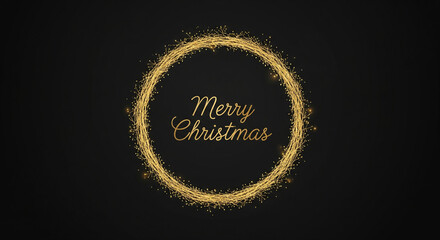 Luxury Christmas poster with golden wreath and Merry Christmas text