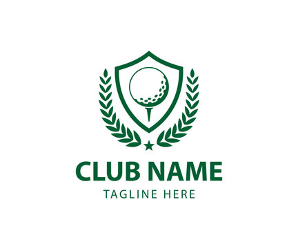 Golf Sport Logo With Shield, Ball and Laurel Wreath vector. Golf Logo Design Vector. Golf Ball Logo