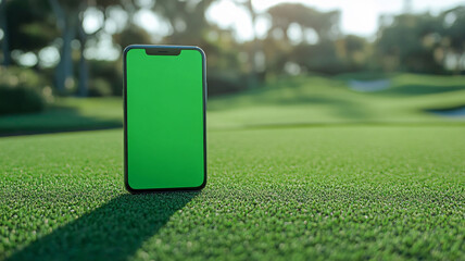 Blank mockup golf flag on a green field for a charity or health-focused tournament