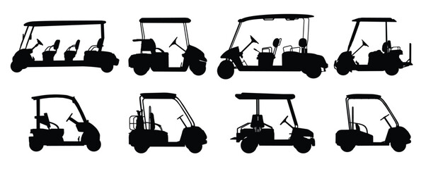 Golf cart silhouettes vector illustration set