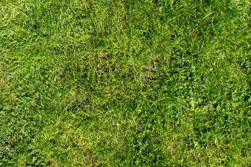 Green grass texture background. Top view of bright grass garden. Lawn for training football pitch, grass golf concept