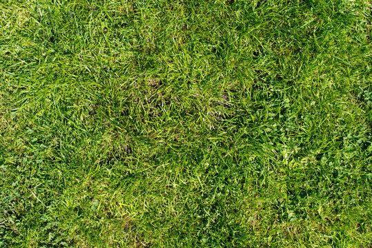 texture of green grass as a background Design element Top view of a grass garden An excellent idea for creating a lawn and training football field Green lawn pattern on golf courses; textured grass
