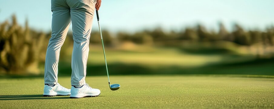 Close-up of golfer preparing shot with tee, perfect for golf lessons advertisement