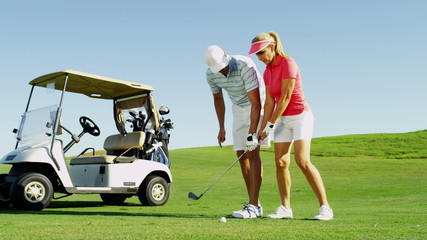 Male Caucasian Golf Professional Female Client Resort Global Target Business