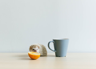 Good morning ? hedgehog with cup, orange and cuteness