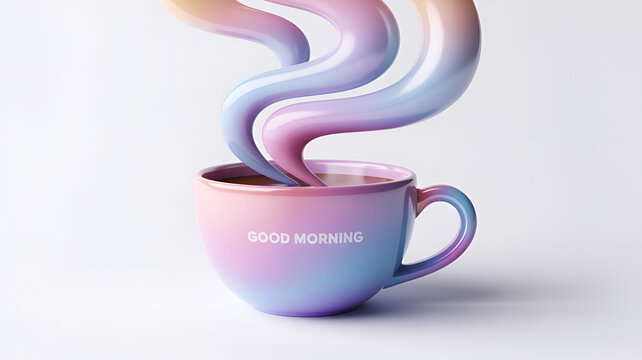 Good morning coffee mug with colorful steam isolated on white background