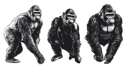 Vintage engraving isolated gorilla set illustration ape ink sketch. Monkey kong background primate silhouette art. Black and white hand drawn image illustration