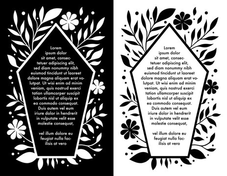 Floral coffin frame with text space. Modern gothic card template for birthday and anniversary. Halloween party invitations. Minimalist vector illustration for printable products.