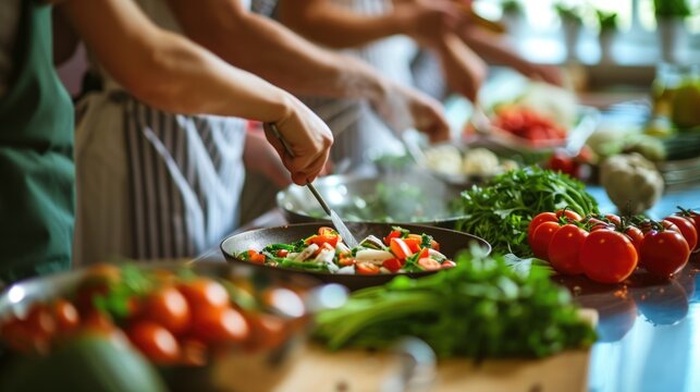 Farm-to-Table Cooking Class with a group of people participating in a cooking class using farm-fresh ingredients.