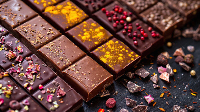 Indulgent Elegance: Exotic Ingredients Enrobed in Luxurious Chocolate Bars