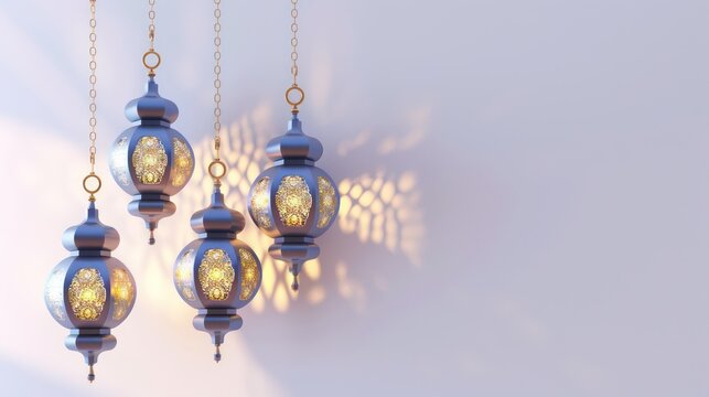 a group of Ramadan lanterns hanging on the side on an empty bright background
