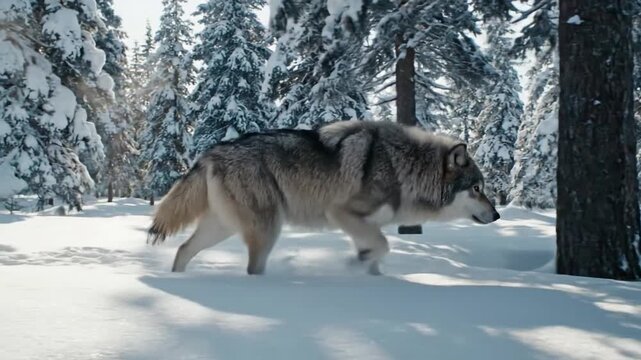 Close up tracking shot of a wolf's paws moving silently through fallen autumn leaves, highlighting its stealth and connection to the forest floor. macro, ground level