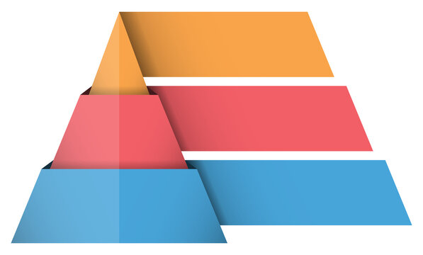Infographic statistical hierarchical illustration of yellow and red triangles divided and cut into thirds , Pyramid shape made of three layers for presenting business ideas or statistical data