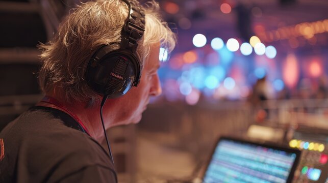 Person works with creative color grading tech, edits on multiple screens. Pro cinematic visual effects, video post production, apply various editing tools. Cinematic vibrant visuals.