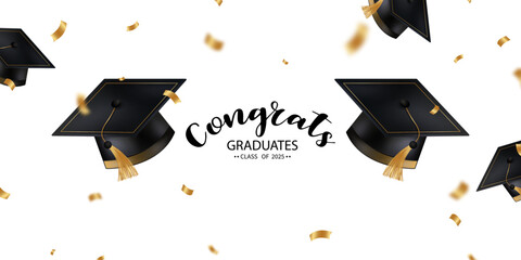 graduation design background realistic graduation hat Golden confetti congratulations to the graduates Vector illustration