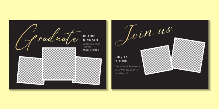 Graduation party invitation card template. Graduation celebration announcement. Class of 2023 vector illustration