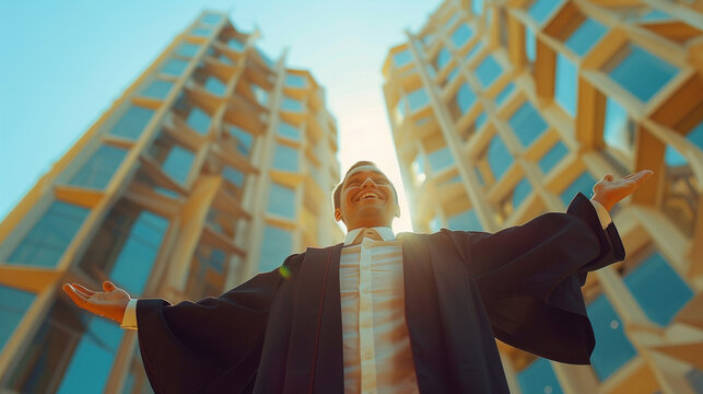 Joyful graduate celebrating academic achievement