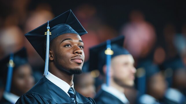 A heartfelt moment during a graduation ceremony featuring Black graduates receiving their diplomas with pride