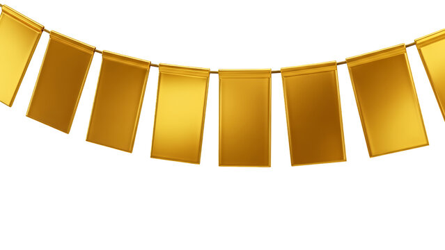 Golden flags or banners in a row isolated on transparent background