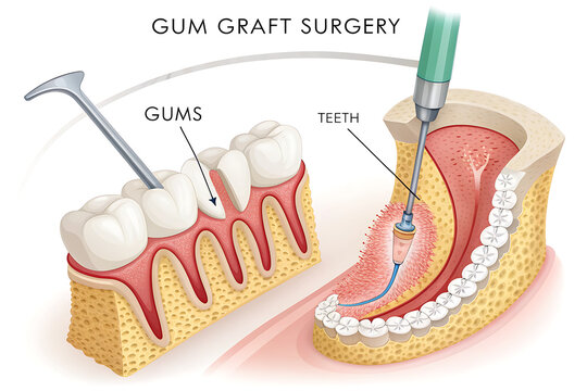 Gum Recession Treatments. Soft tissue graft surgery in the gum. Illustration of Dental concept. Periodontal Disease