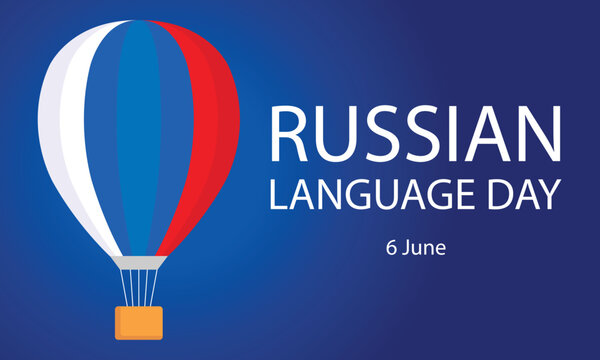 Russian Language Day. 6th June International Russian Language Day social media cover with Books in blue,  red colour, Russian Flag and speech bubbles of Russian words. Speak Celebrate Russia Culture