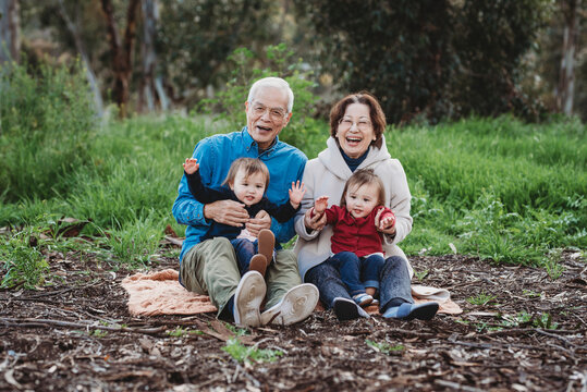 Love a tree day celebration with grandmother and granddaughter outdoors
