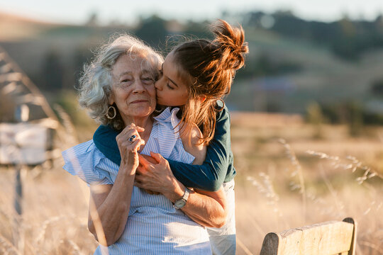 Happy grandmother hugging her grandson