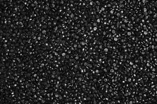 Many black and gray granules of polypropylene, polyamide. Background. Plastic and polymer industry, industry. Microplastic products.