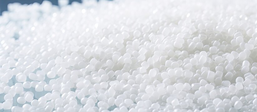 Extreme close-up of polyethylene granulate batches, plastic raw material