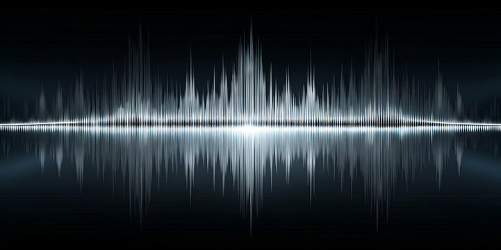 A graphic representation of sound waves, showcasing amplitude variations against a dark background, symbolizing audio frequency and sound intensity.