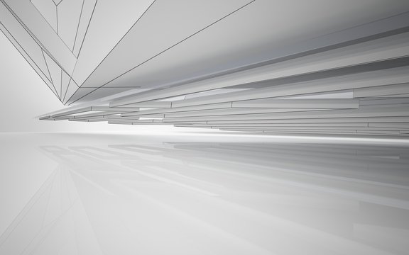 Abstract white interior highlights future. Polygon drawing. Architectural background. 3D illustration and rendering