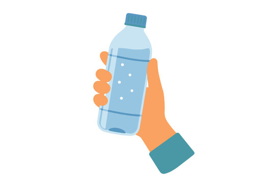 Hand holding a clear plastic bottle of fresh drinking water with a blue cap