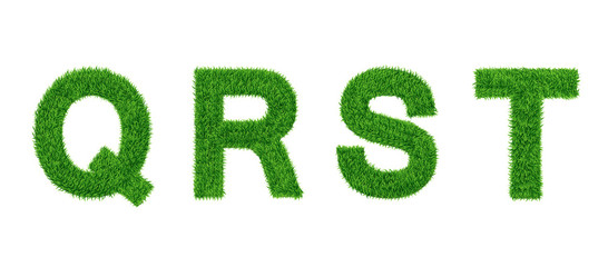Grass letter Collection. Q, R, S, T Isolated from white .Eco symbol . The green lawn background. Vector illustrations