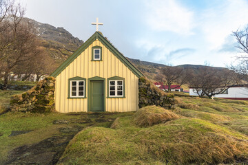 Grass-roofed buildings in Saksun, Faroe Islands