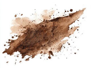 Earthy Watercolor Smears. Hand-Painted Brown Stains and Ground Elements on Clean White Canvas