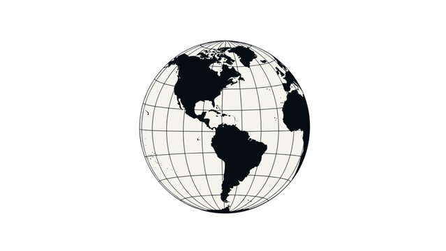 Spinning earth. Tilted sphere view. Slow speed globe rotation. Colored countries style. World map with graticule lines on desaturated background. Admirable animation.