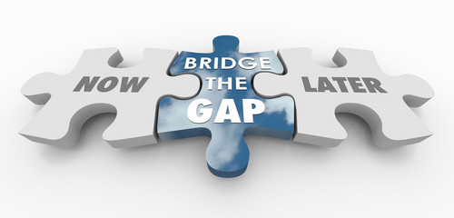 Now Vs Later Bridge the Gap Puzzle Pieces 3d Illustration