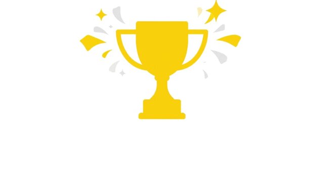 Golden trophy cup icon with yellow and gray confetti and stars on a white background, conveying a celebratory mood.
