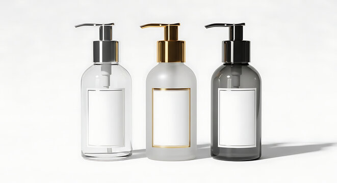 Skincare Pump Bottle Mockup Set - Clear, Frosted, Gray Packaging