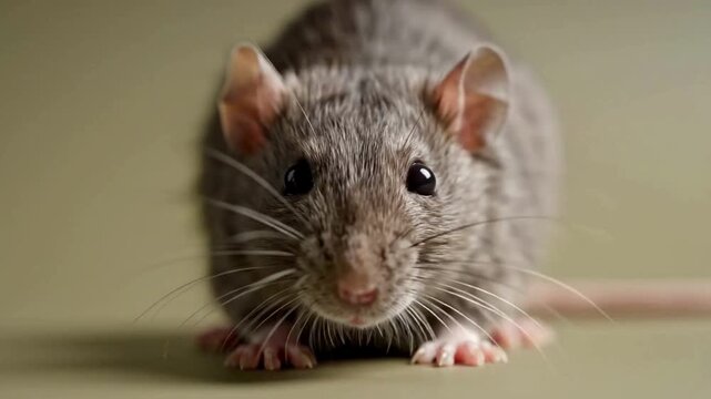 Child showing affection to her tame pet rat. The dusty gray rodent is perched on her neck. Concept of caring for small animals and pets.