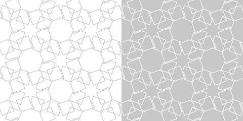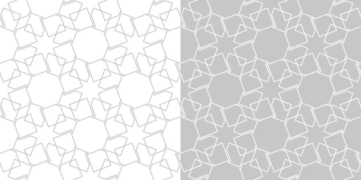 Geometric seamless patterns. White and gray square backgrounds compilation